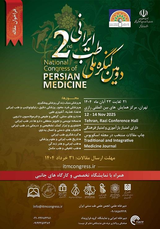 به اطلاع می رساند؛ " دومین کنگره ملی طب ایرانی به همت انجمن علمی طب سنتی ایران و حمایت دفتر طب ایرانی وزارت بهداشت، درمان و آموزش پزشکی در تاریخ ۲۱ الی ۲۳ آبان ماه ۱۴۰۴ در مرکز همایشهای رازی برگزار خواهد شد.